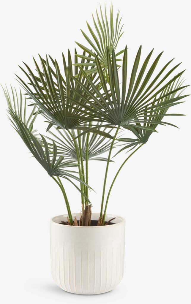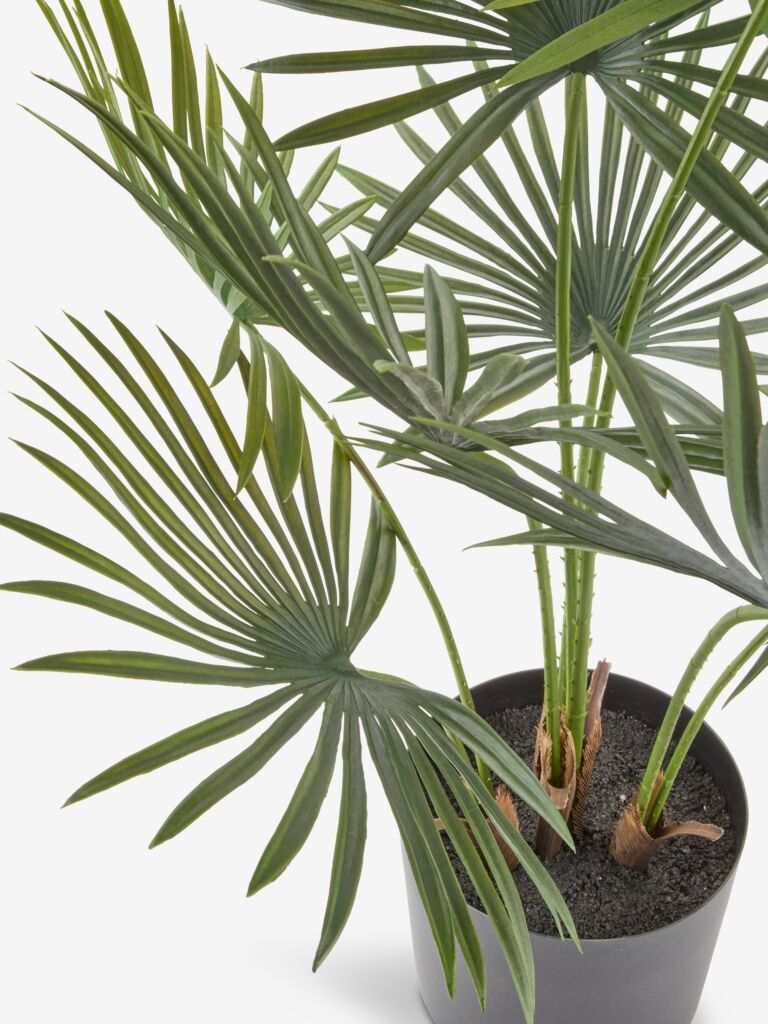 Естествено изглеждащо изкуствено палмово растение с буйни, зелени листа в черна саксия. Това растение не се нуждае от поддръжка и ще освежи дома или офиса ви.  Ш60 x Д45 x В73 см