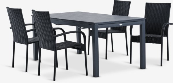 VATTRUP + GUDHJEMVATTRUP Д172/276 маса + 4 GUDHJEM стола черни