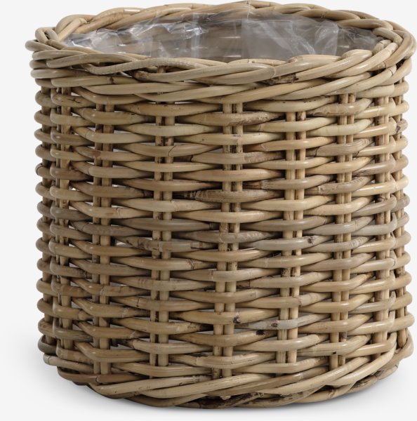 Плетена кашпа от естествен, необработен ратан с пластмасова подплата. Използвайте я като стилна, рустик кошница за вашите растения или като място за съхранение. Тъй като ратанът е естествен продукт, са възможни леки вариации в размера, теглото и цвета. Ø50 x В45 см