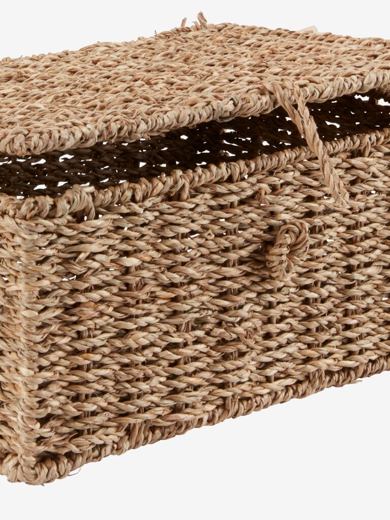 Кутия за съхранение, изработена от морска зостера, с практичен капак. Компактният дизайн пасва добре на рафтове или в шкафове. Ш32 x Д20 x В14 см