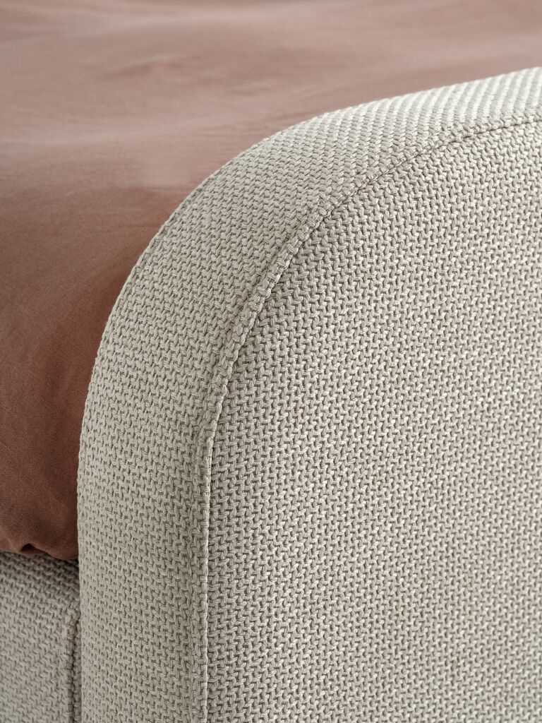 Текстил и масивна дървесина. Подходяща за пружини и матраци от пяна 160x200 см. Не вкл. основа и матраци. Ш174 x Д216 x В101 см