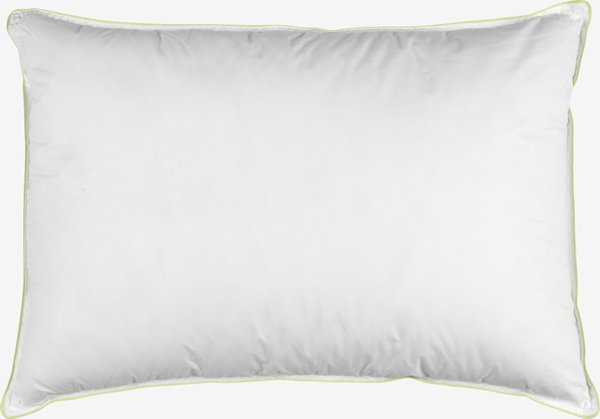 Възглавница с изкуствен пълнеж 50x70 см с уникален пълнеж от силиконизиран влакнест пух, наподобяващ естествен, 800 г. Мекият, лек влакнест пух запазва обема си и лесно възвръща формата си. Мекият калъф от 100% памучен камбрик е третиран с биоцида GREENFIRST®. Пране 60°C. Вкл. чанта за съхранение.