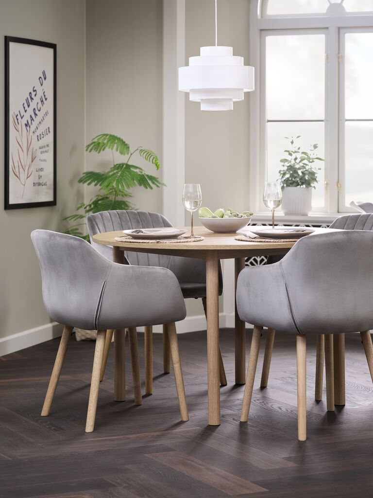 ALSTED + ADSLEVALSTED Ø120 маса натурален дъб+ 4 ADSLEV стола сиво кадифе