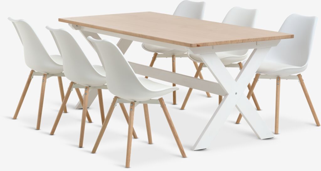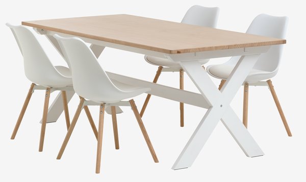 VISLINGE + KASTRUPVISLINGE Д190 маса натурал + 4 KASTRUP стола бели
